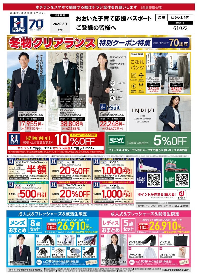 はるやま 冬物クリアランス特別クーポン配信 (はるやま 大分店)