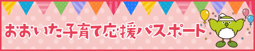 リンクする際には、「おおいた子育て応援パスポート」のホームページへのリンクである旨を記載してください。当サイトへのトップページ(http://www.oita-kosodate.jp/)へのリンクには、こちらのバナーをお使いいただけます。